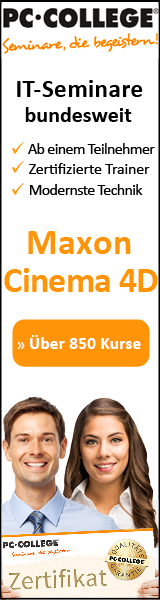 In einem Cinema 4D Kurs lernen Sie an praktischen Beispielen, wie Sie Ihre Animationen und Simulationen zum Leben erwecken. Maxon Cinema 4D bietet zahlreiche Gestaltungsmöglichkeiten und Spezialeffekte, mit denen sich schnell ein professionelles Ergebnis erreichen lässt. Je nach Branche, in der Cinema 4D eingesetzt werden soll, gibt es entsprechende Erweiterungen, die speziell auf die Bedürfnisse und Ansprüche abgestimmt sind. Genauso vielseitig sind auch die Lehrgänge, die es zu diesem Programm gibt. Für Einsteiger, Fortgeschrittene und Spezialisten stehen umfangreiche Fortbildungsmöglichkeiten für ein gezieltes Training zur Auswahl.